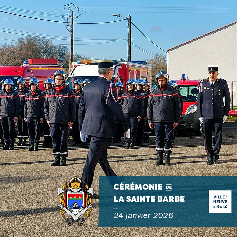 Le chef de centre, la présidente de l’Amicale et l’ensemble des sapeurs-pompiers de Bourgneuf-en-Retz sont heureux de vous convier à la cérémonie de la Sainte-Barbe, qui se tiendra le 24 janvier.