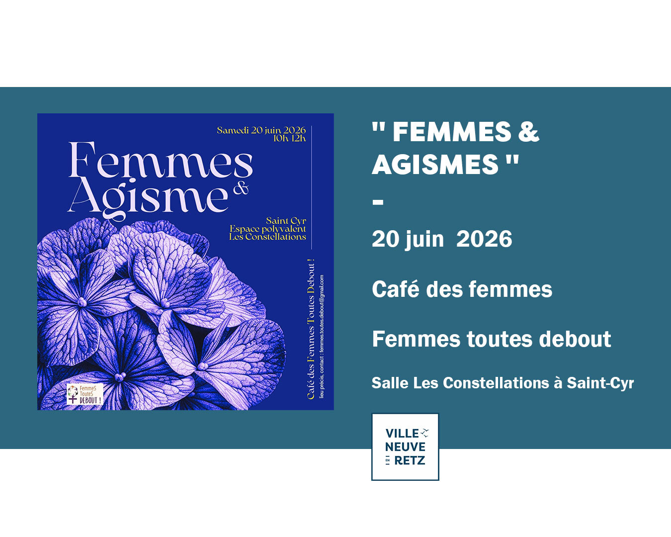 • le 20 juin sur le thème Femmes et Agisme à la salle les Constellations à St Cyr