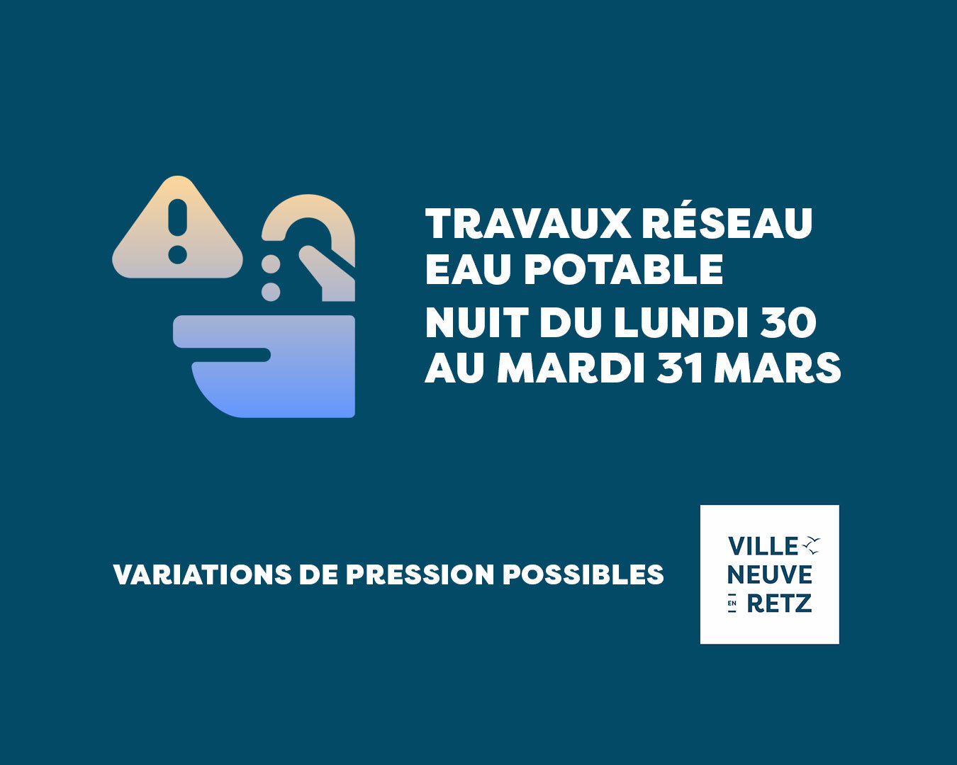 Ces travaux portent sur deux conduites structurantes et sont susceptibles de provoquer des variations de pression durant cette période.